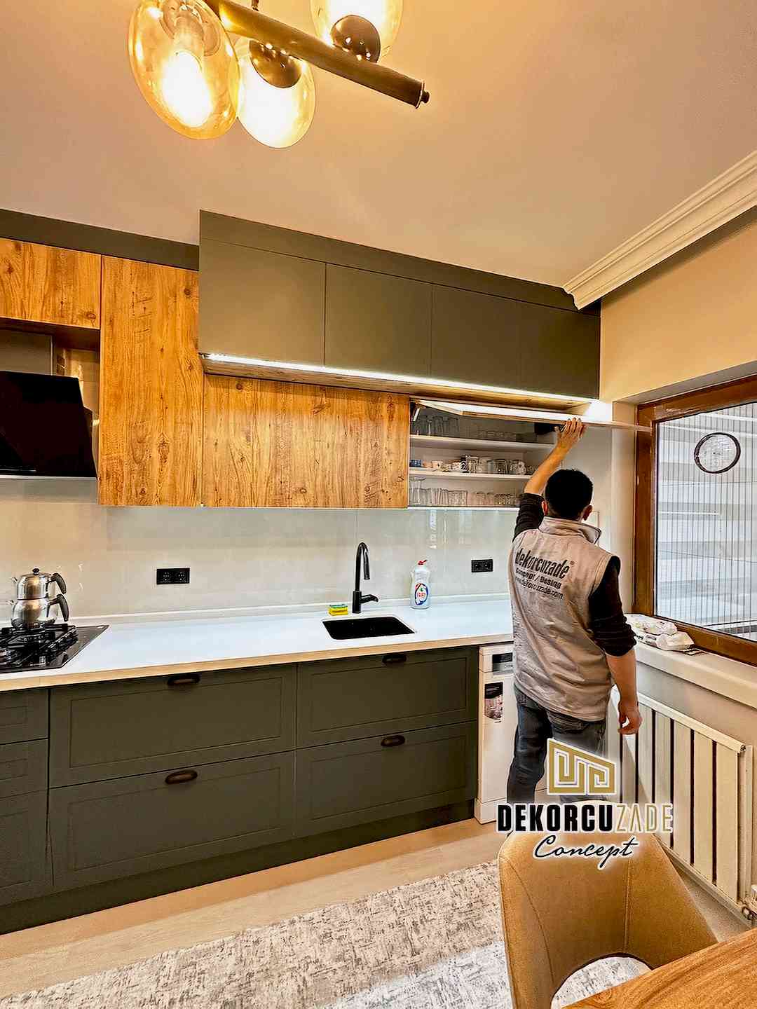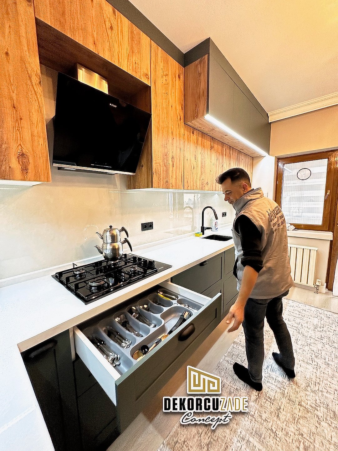 Bizler DekorcuZade concept olarak 100 kişilik tadilat ekibine, 25 kişilik sitelerdeki fabrikamızda ahşap ve mutfak ekibine sahibiz. Bu anlamda DekorcuZade’de sokaktan toplama usta yoktur. Ekip ve tüm ustalar kendi bünyemizde kendi ustalarımızdır. Zaman ve zamanlama yani söz verilen iş başlangıcı ve iş teslim süresi çok önemlidir. Ve bizler bu konuda çok hassasız.